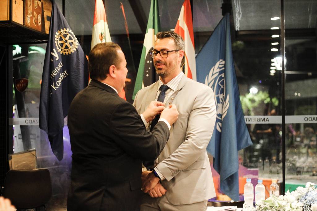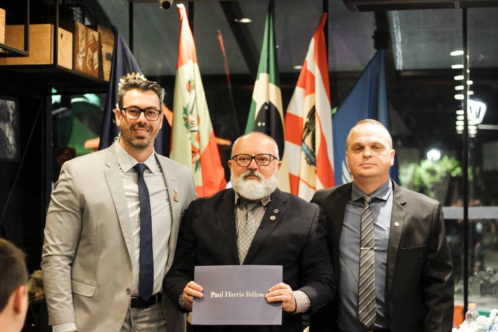 Um dos momentos mais emocionantes da cerimônia foi a entrega do Pin e Certificado Paul Harris ao companheiro Carlos Heinz Hoffmann, reconhecendo-o como o presidente mais antigo ainda ativo no clube. Esta honraria simboliza não apenas os anos de dedicação ao Rotary, mas também o impacto positivo que Hoffmann teve nas ações do clube ao longo dos anos.