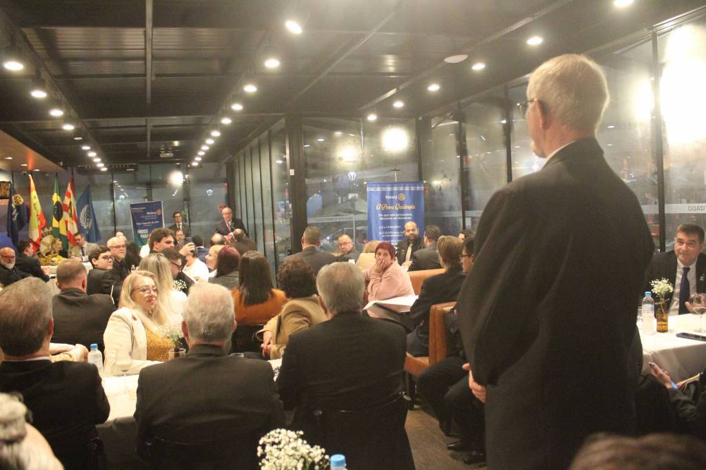 O presidente do ano rotário 2024-2025, André Luiz Andrade, aproveitou a oportunidade para apresentar as ações realizadas durante sua gestão. Ele compartilhou sua visão sobre como o clube poderá continuar a crescer e a servir a comunidade de Blumenau de forma eficaz. Por sua vez, o presidente 2025-2026, César Augusto de Lima, enfatizou a importância de promover o bem-estar social através de projetos e eventos, ressaltando que a união dos companheiros é fundamental para continuar essa missão.