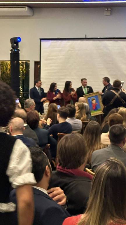 Também estiveram presentes, prestigiando a cerimônia, destacadas figuras do Rotary Club Tubarão Luz: a Dra. Graziela Porto, Presidente 2025/26, acompanhada de seu esposo Antonio Modesto, e a Presidente 2023/24, Kércia Menegaz. Durante o evento, foi entregue o quadro Santa Catarina, do artista Luciano Martins, ao Rotary Club Tubarão Sul.