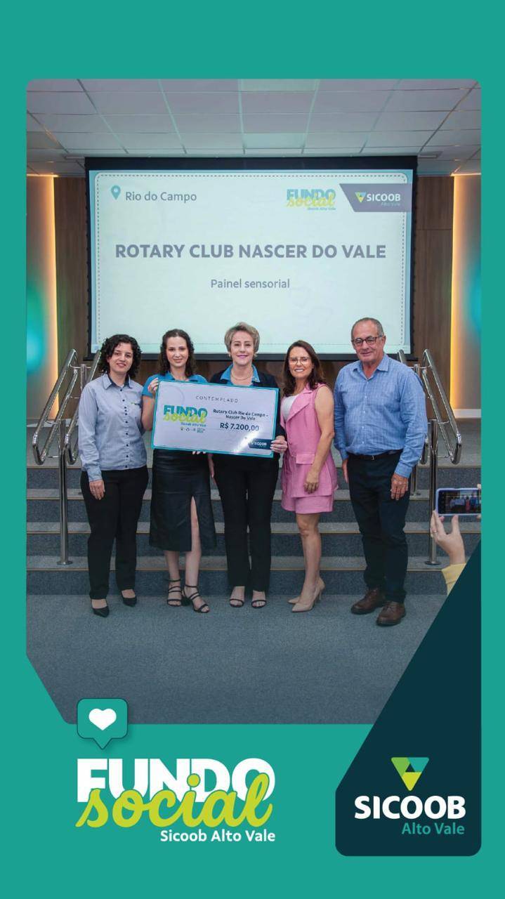 O Rotary Club Nascer do Vale de Rio do Campo foi contemplado com o projeto “Painel Sensorial: Estímulo, Autonomia e Interação Social na Educação Infantil”, selecionado pelo Fundo de Investimento Social (FIS) do Sicoob Alto Vale.