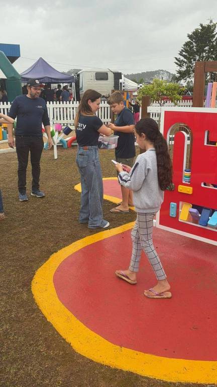 Durante a inauguração do Parque Sensorial, o Rotary Club de Rio do Campo também distribuiu doces para as crianças, celebrando o Dia das Crianças com carinho e união.